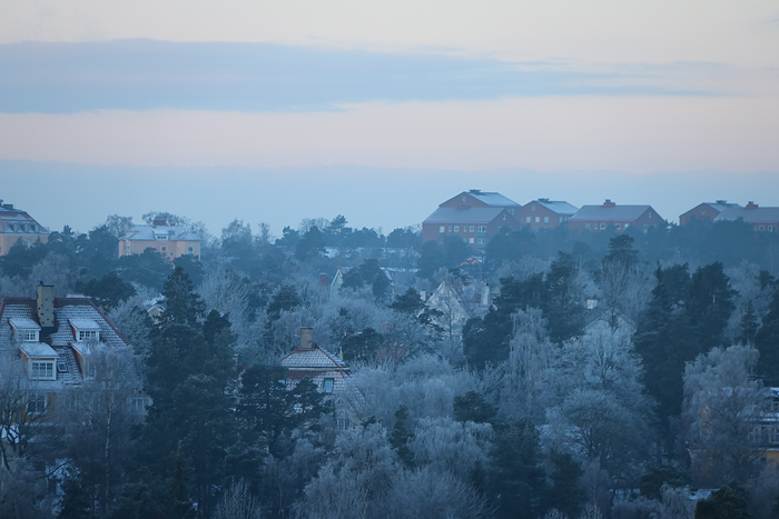 9 februari hade det börjat bli kallt, och jag tog en liten fotorunda efter jobbet. Upp på Skinnarviksberget på Södermalm bland annat och njuta av en vacker solnedgång.