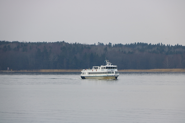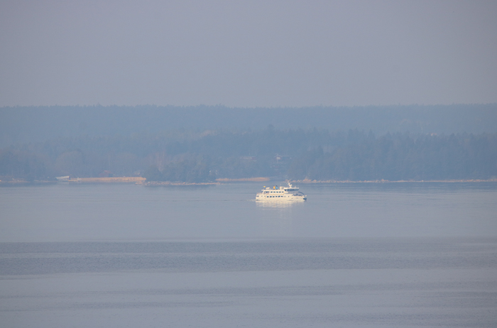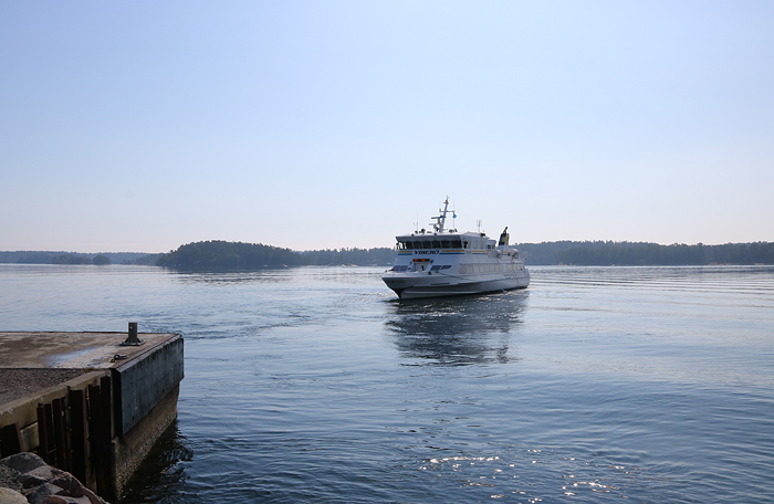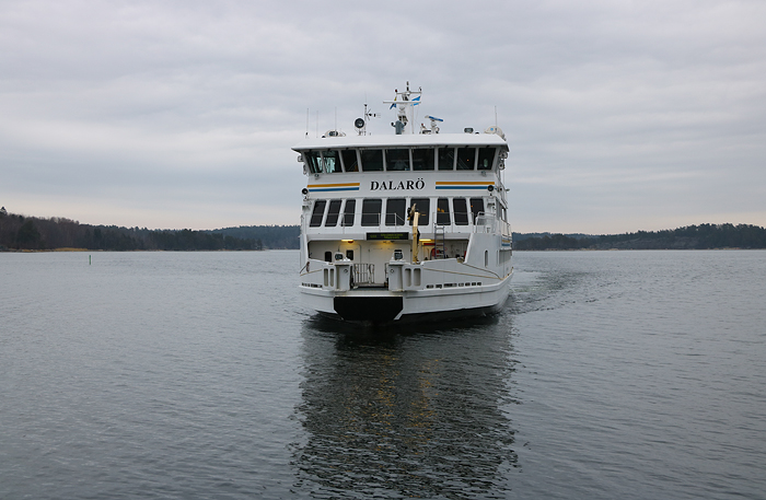 Trots maximal inzoomning med 150-500 mm-objektivet så kunde jag inte komma fram om det var Nämdö eller Gällnö som gick över Östra Saxarfjärden mot Grundvik. Men efter lite efterforskning i tidtabellerna så kom jag fram till att det är Nämdö som syns på bilden. 😉
