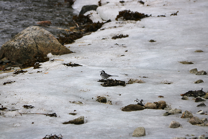 Ett efterlängtat vårtecken, sädesärlan, på ett underlag som man nu inte direkt längtar efter…