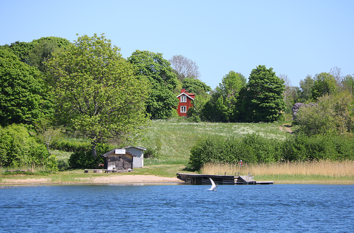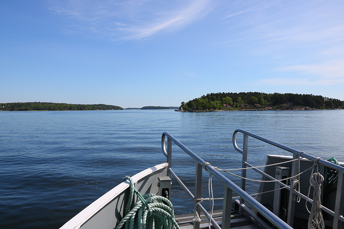 Vi passerade vid tolvtiden den fina ön Lidö norr om Kapellskär. Samtidigt som vi passerade där passade man på att intaga den goda sallad med varmrökt lax som serverades ombord, och som ingick i priset.
