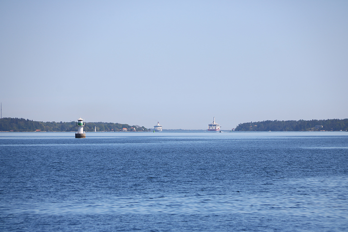 Till Furusund kom vi en stund senare efter att denna bild togs. Färjorna på bilden är Viking Cinderella samt Viking Grace. Det som ser ut som en skorsten från ett värmeverk är i själva verket ett rotorsegel som är placerad för om skorstenen på Viking Grace. Ett påfynd i att få ner bränslekostnaderna samt utsläppen.