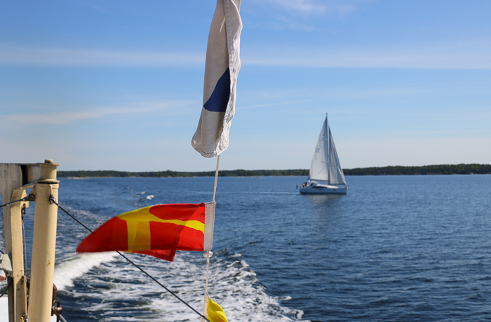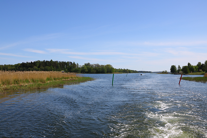 Med vy mot norr i Furusundsleden. Härligt att stå o njuta på fördäcket i det fantastiskt fina vädret som dominerade månaden maj.