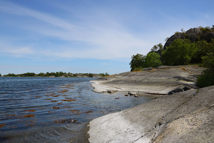 Granhamnsfjärden, Rankaröfjärden, Ådskärsfjärden, Vidingefjärden och Nåtfjärden var vatten vi kom att passera innan vi gick in i Norrpada skärgård. Ett härligt klippigt skär på bilden här. 😉