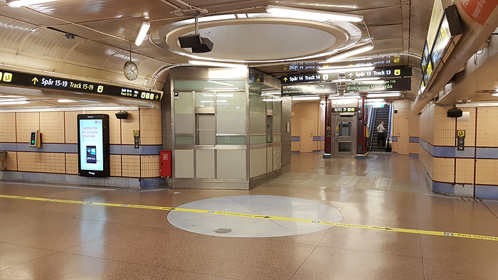 Tidigare låg här spärrar för pendeltågen söderut mot Södertälje och Västerhaninge/Nynäshamn. Nu kom jag att ta regionaltåget mot Västerås från denna perrong och spår 13.