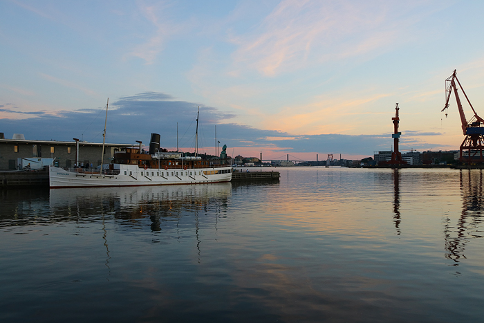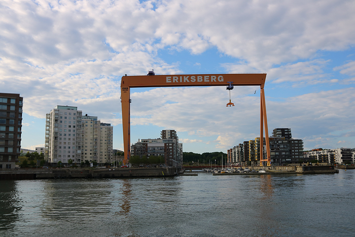 När båten efter avgång 18:30 stävade ut från centrala Göteborg passeras det gamla varvet vid Eriksberg där spåren efter själva varvsverksamheten syns framför allt i den stora och imponerande bockkranen. Kapten ombord drog i ångvisslan som en symbolisk hälsning till ångbåtens ”födelseplats”.