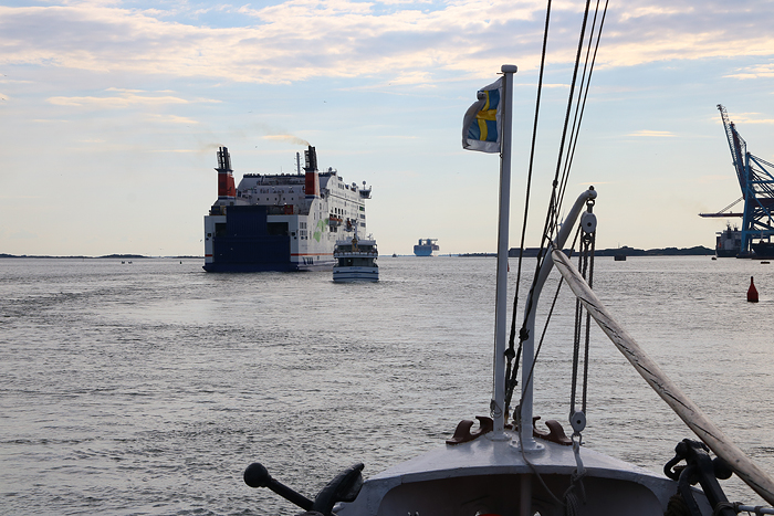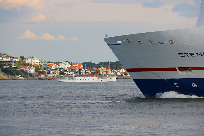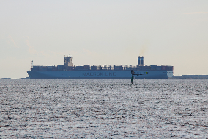 ”På jakt” efter Kungsö, Stena Germanica och Maerskjätten. Kungsö ägs av Styrsöbolaget och går ifrån Stenpiren till Hönö i Göteborgs skärgård, en ny trafiklinje för i år. Och på tal om Styrsö så var det på den ön i Göteborgs södra skärgård som grundaren av Stena Line – Sten A. Olsson föddes år 1916. Vi kom att passera Styrsö under kvällsturen, men passage av Stena Germanica (på väg mot Kiel, Tyskland) kom vi inte att göra. 😉