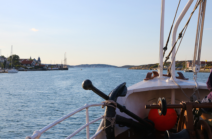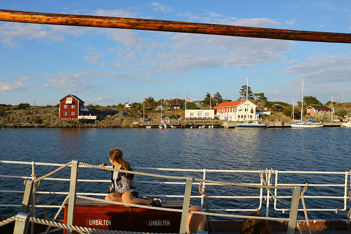 Från norra skärgården gick vi över Dana fjord och Vinga sand innan vi styrde in i den så kallade ”Snobbrännan” – en farled som går utmed Styrsös norra sida. I denna passage mötte vi en trubadur – alltså en skärgårdsbåt med namnet Trubaduren.