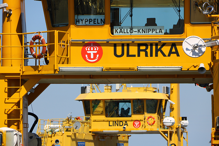 Ulrika och Linda – bägge två med hemmahamn Vaxholm vilket alla Trafikverkets färjor har. Då färjeläget vid Hyppeln höll på att byggas om vid tillfället så körde enbart färjan Ulrika dit, med en specialbyggd ramp ombord. Resan över till Hyppeln tog ca 10-15 minuter.
