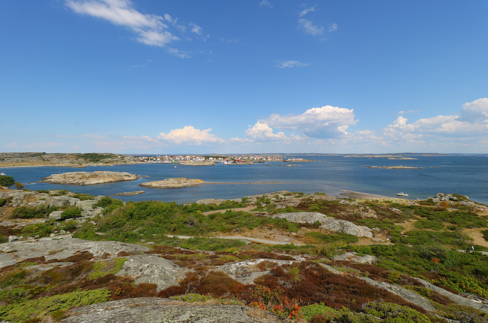Så gick jag upp på en hög punkt på ön med denna utsikt mot bland annat Rörö.