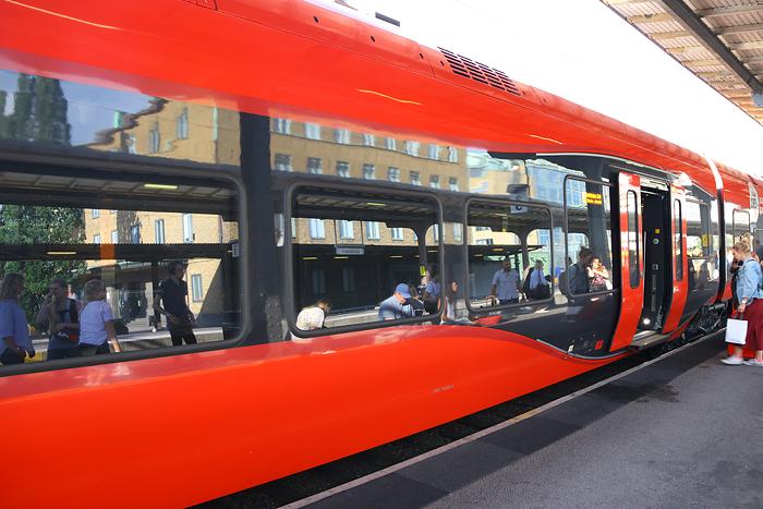Däremot satte tågresan hem färg på denna resas avslutning, inte bara i tågets färgsättning. 😉 För när klockan var omkring halv sju så hämtade vi vårt bagage och förberedde oss för att gå ombord på MTR Express till Stockholm. Så långt gick det ju bra. Och väl ombord var vi ju i god tid inför avgång 18:55.