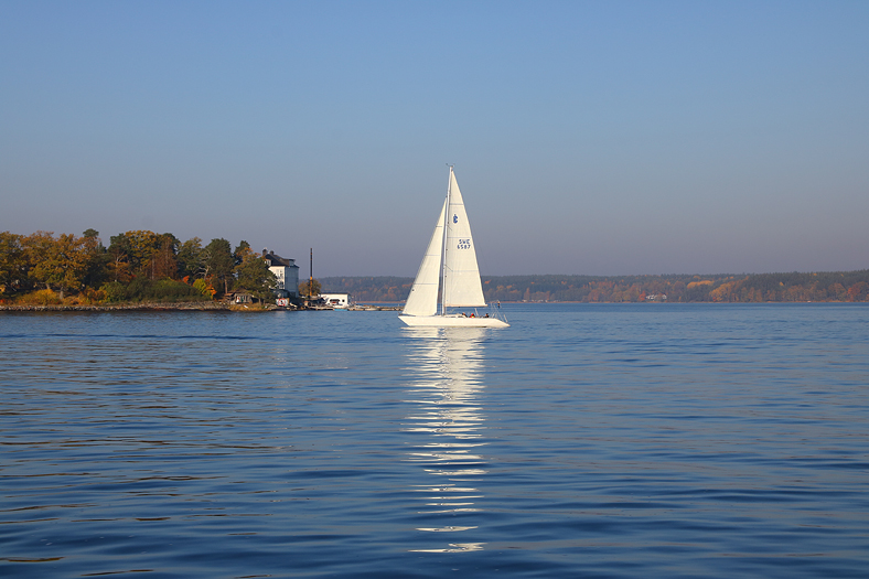 Till en början så var det ganska lugnt vädermässigt på sjön. Ja lugnt med båttrafik också förstås – men en segelbåt syntes i alla fall med segel.