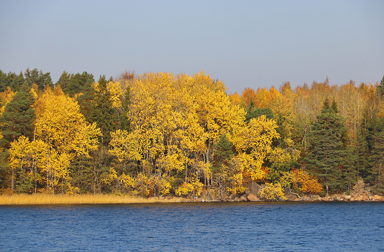 Och en bit norr om Huvön så ligger Östanå, och nära Östanå var det färgrikt med olika nyanser av gult och lite mer rött på träden.
