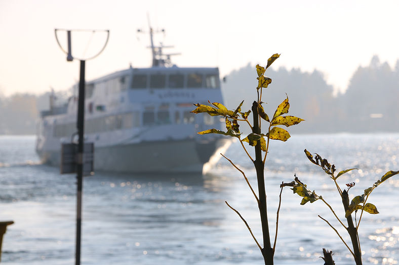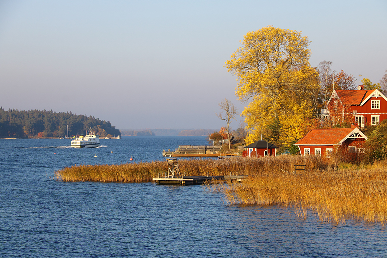 Nästa höstfärgbild visar träd på Huvön – mitt emot Ålön som trafikeras av snabbåtarna till norra skärgården.