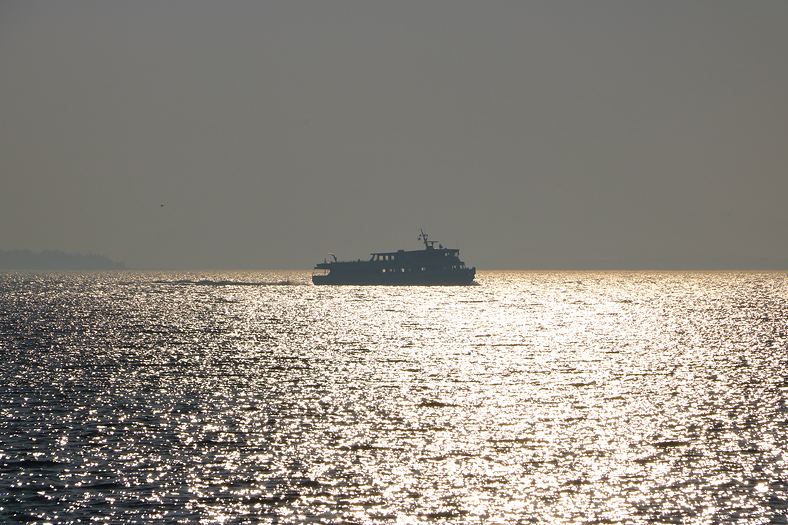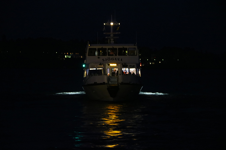 I det totala motljuset kommer här Sjögull på väg mot Söderöra för att hämta upp oss och flertalet andra resenärer mot Stockholm.