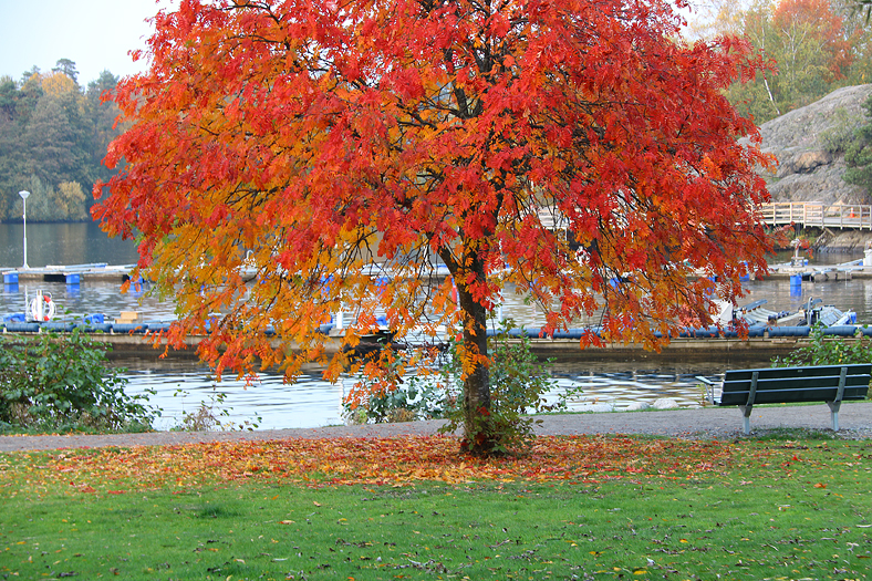 Från Sätra tog jag tunnelbanan norrut, inget ovanligt i det. Men jag av tuben i Axelsberg. Utgick från Axelsberg och promenerade ner mot vattnet. Njöt till fullo av dessa färgrika träd.