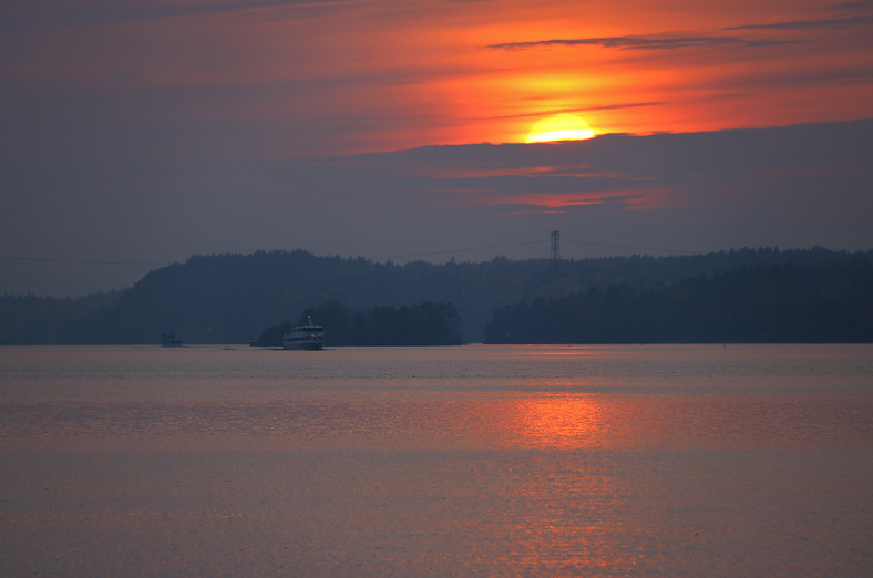 Istället för att åka tunnelbana direkt till Ropsten ifrån Sätra så går det att göra denna variant på hemresa, och även om det tar en bra bit längre tid så är den så mycket trevligare faktiskt – och inte minst om det bjuds på fina naturupplevelser så som fin aftonrodnad eller en havsörn i skyn.