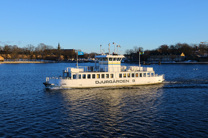 Den sista ”snygga” färjan på linje 82 är Djurgården 9, som ännu ej har blivit ommålad i SL-färger à la blått och grått och därmed fortfarande ser anständig ut…