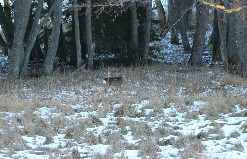 Spår av vilt syntes i snön, och på en slätt nära Skälviks brygga syntes ett rådjur på avstånd.