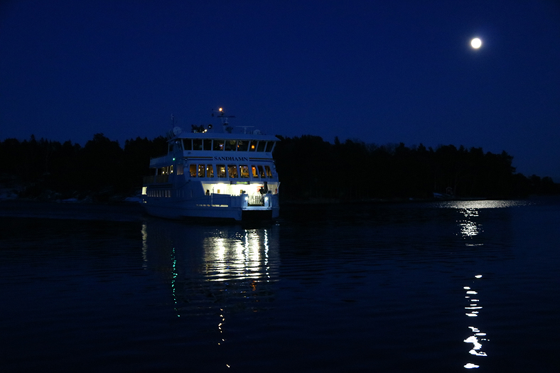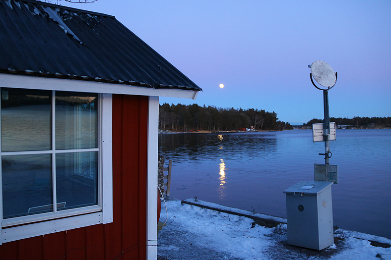 Hade med mig mitt 150-500-millimetersobjektiv, den kom jag bara att använda under ett tillfälle, vilket var när jag skulle fotografera den mäktiga månen som kom upp medan vi väntade på båten på Söderboudds brygga.
