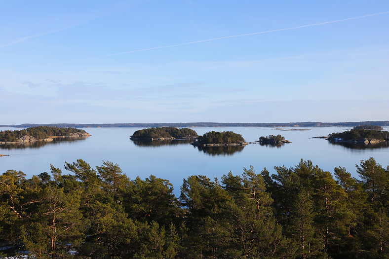 Öarna på bilden bär namn som Lillskären, Bredskären och Lill-Finn.