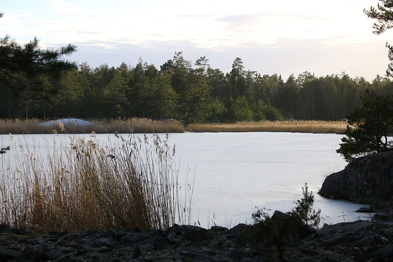 Med mildvädret som drog in i februari så var ju inte direkt Nämdö och Ingaröfjärden islagda. Däremot detta träsk på Björnö låg isen på.