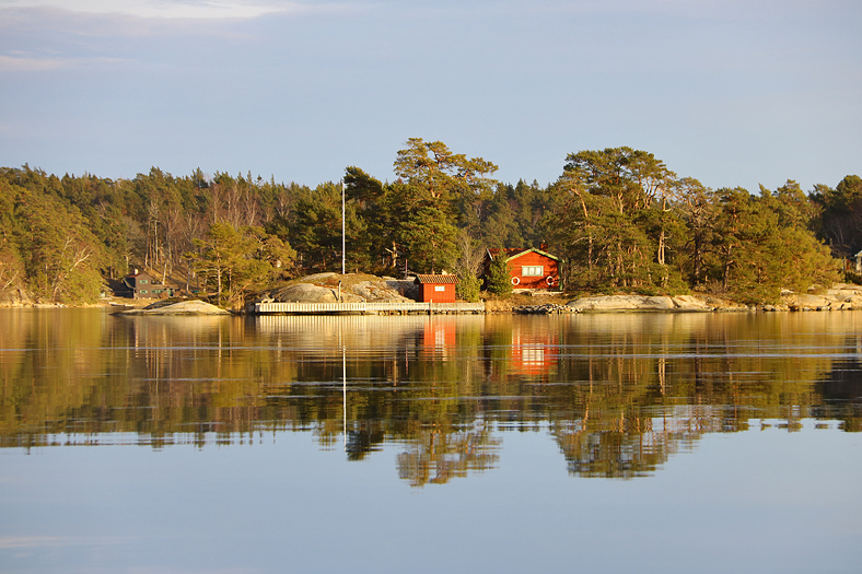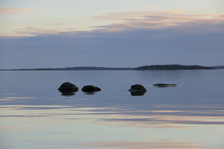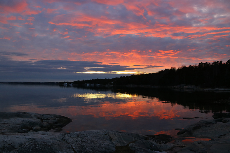 Lite mer motljus mot Kalvholmarna, Björnöön och Tallholmen.
