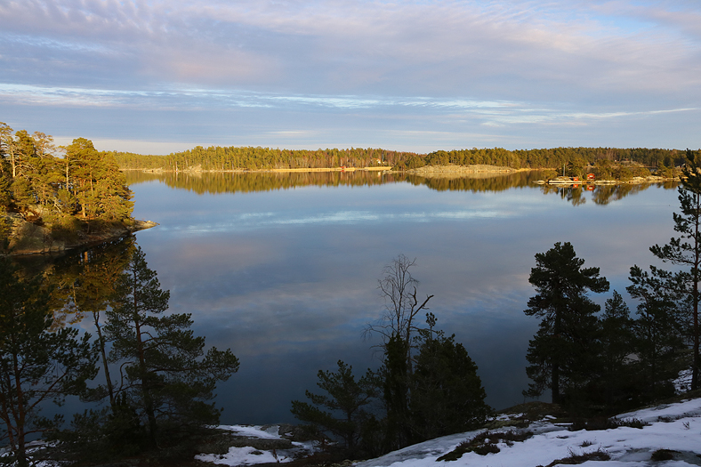 Närmare vattnet nu. Blev ganska så fängslad av de vackra vyer jag fick skåda. Det är ju sällan det är så här lugnt mitt på dagen. Men att kolla väderprognos inför en utflykt är inte bara att kolla temperatur och om det blir sol/inte sol, utan även vinden har en betydelse – i alla fall om man vill uppleva stämningsfulla vyer.