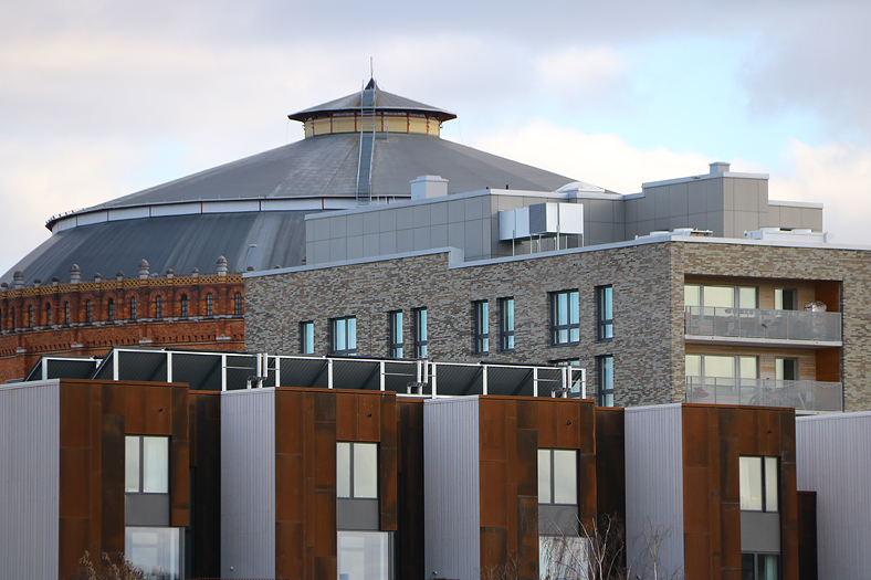 Norra Djurgårdsstaden bjuder på såväl ny som gammal arkitektur. Från Ferndinand Bobergs mäktiga gasklockor i tegel, till Zenhusen som är radhus i stadsmiljö. Hela Norra Djurgårdsstaden är byggd med extra tanke på hållbarhet och minskad miljöpåverkan, och som synes på Zenhusen finns solpaneler på taket.