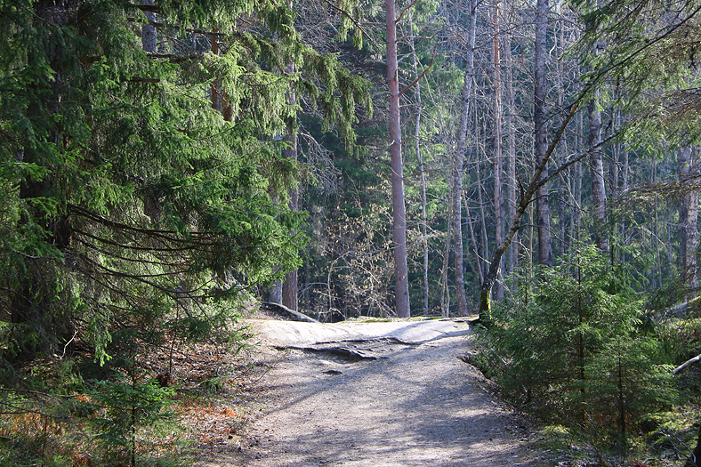 Från Brakmaren blev raka vägen mot Raksta, och sedan över till ett bostadsområde kallat Solberga. Uppe på Solberga fanns en stig som skulle leda mig ner sista biten till Tyresö slott. Munkvägen var vägen man gick upp till denna naturstig, och från där kom det bara att gå utför med vandringen… 😉