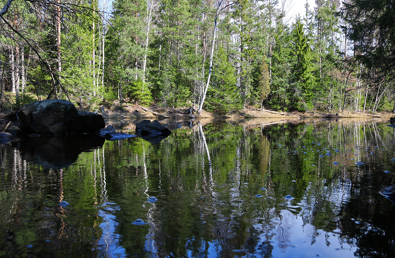 Efter en dryg halvtimmes vandring på den snåriga stigen genom brandområdet, så kom jag sedan ner in i riktig skog och mot Stensjön. Precis innan Stensjön så uppenbarar sig ett härligt vattendrag.