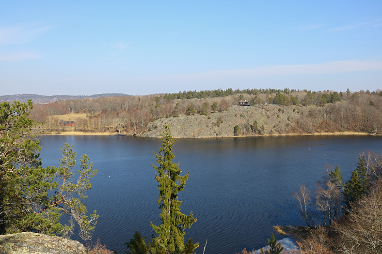 Jag avvek vid ett tillfälle från Vissvassvägen, bland annat då jag upptäckte en stig på en höjd, som kom att leda fram till en plats med denna härliga utsikt över Brakmarsviken. På andra sidan viken ligger Hammarbergets naturreservat.