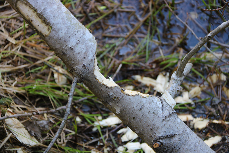 Intill vattendraget, längs strandkanten, syntes tydliga spår av bäver. Nu väntar jag bara på att få se en vid något tillfälle.