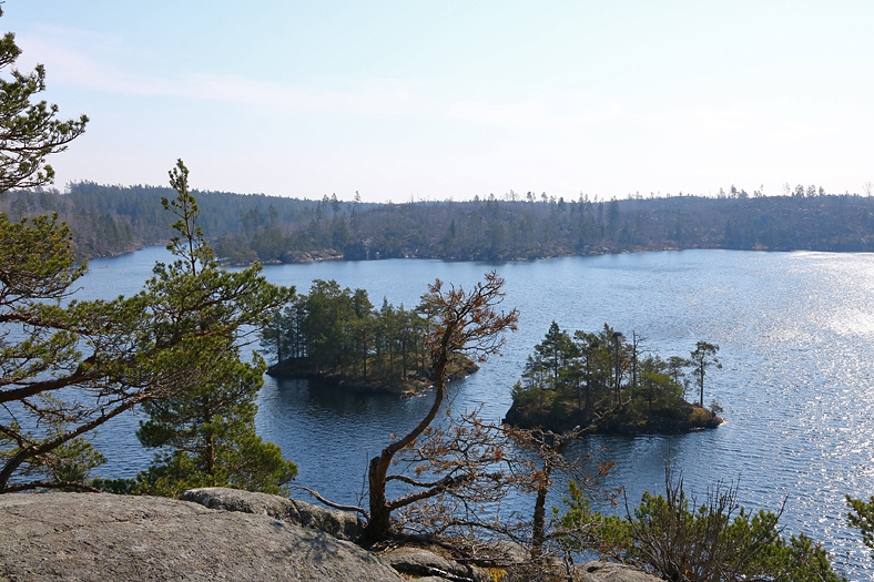 Jag avvek vid ett tillfälle från Vissvassvägen, bland annat då jag upptäckte en stig på en höjd, som kom att leda fram till en plats med denna härliga utsikt över Brakmarsviken. På andra sidan viken ligger Hammarbergets naturreservat.