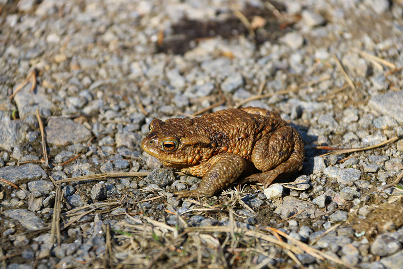 Inget groddjur syntes i groddammen vid Tyresta by, men däremot på en väg ifrån Stensjön mot Gammelmyra så satt en padda mitt på vägen. Mitt i solen dessutom, men bland grodjuren så är vanliga paddor mer tåliga att vistas i miljöer som inte direkt har vattenkontakt.