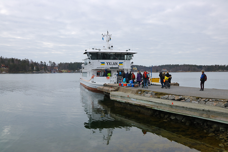 Efter dryga två timmar iland så kom vi vid 13-tiden att åka tillbaka mot Furusund med m/s Yxlan. Och så där på en annandag påsk, med en påskhelg bakom, så var det fler än oss som skulle in mot fastlandet.