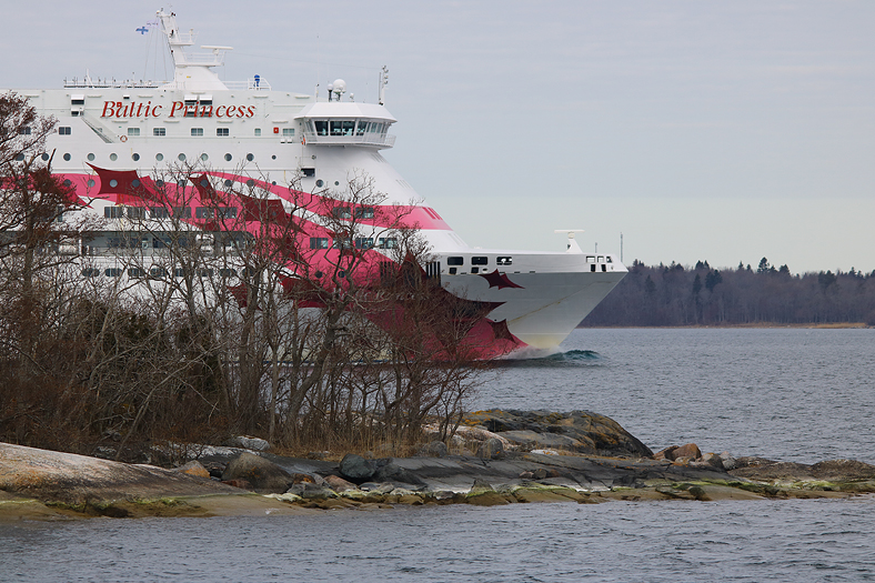Så dök denna jätte upp i idyllen…Baltic Princess, som ägs av Tallink Silja, på väg mot Åbo via Mariehamn på Åland.