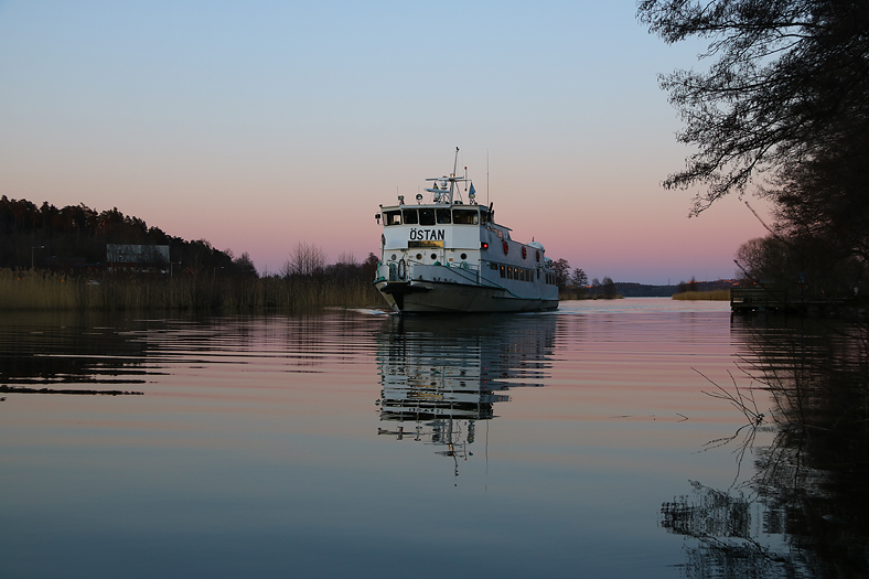 Första gången jag åker med denna båt med officiella namnet Östan, som är denna 50-åriga skärgårdsbåts ursprungsnamn. Under en specialresa en oktoberdag 2008 hade hon tillfälligt detta namn, men i övrigt var namnet Södertörn under 23 års tid. Östan är ett av Blidösundsbolagets senaste tillskott i dess växande flotta. Snart kommer dessutom ett nybygge som ska in på denna linje mellan Klara Mälarstrand – Ekerö, nämligen m/s Lux.