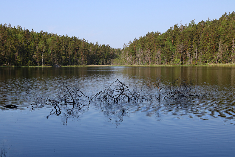 Vid Åvaträsk satt jag och åt lunch i min ensamhet, alltså mänskliga ensamhet, för runt om mig myllrade av liv i såväl land, vatten och i skyn. Bland annat denna padda som kom upp till ytan med jämna mellanrum, och kom nära mig vid ett tillfälle. 🙂 Myror i stora mängder, trollsländor, ormvråk och havsörn m.m fanns bland övriga lunchsällskap. 😉