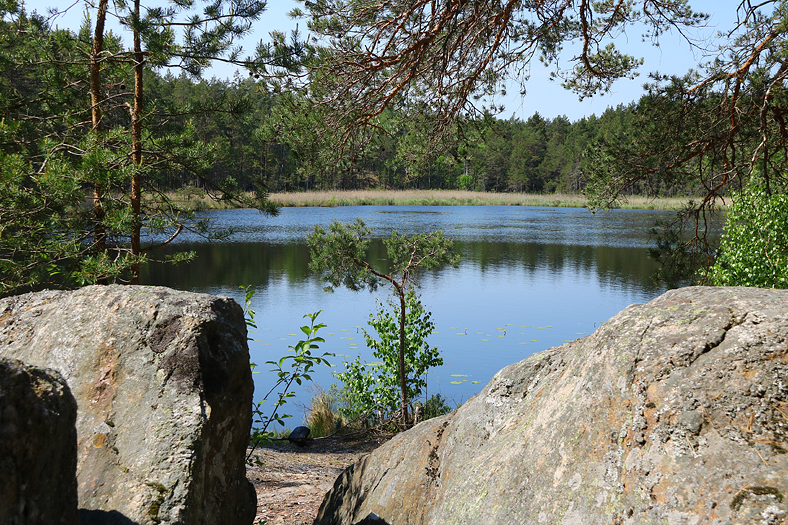 Idylliskt är det verkligen vid Åvaträsk som ligger inom området för Tyresta naturreservat, nationalparken slutar en bit norr om Åvavägen. Efter naturreservatets gräns i söder så kommer en annan typ av skog och mark.