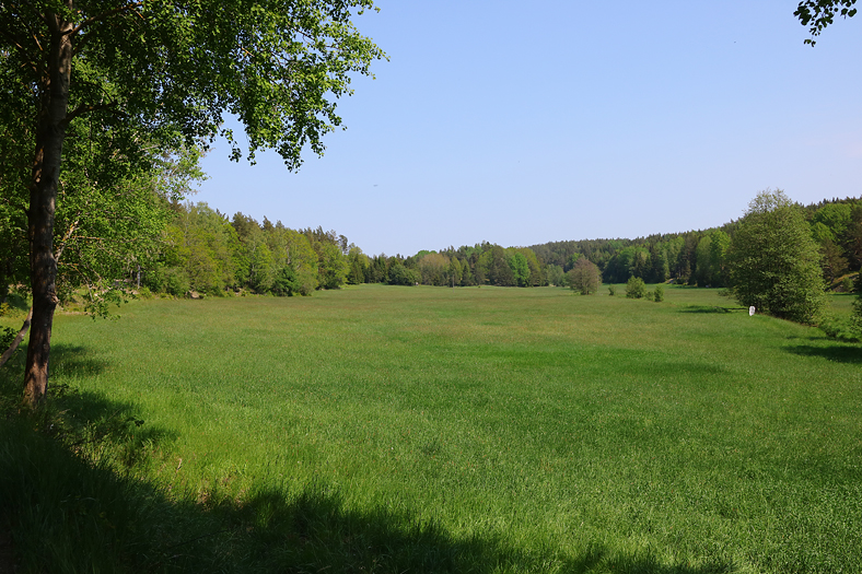 Men efter att ha passerat det vackra torpområdet Vinåker så kom jag fram till större och grönare marker som en gång i tiden varit en havsvik. Promenaden fortsatte efter torpet Sjötäppan söderut på en väg, på bitar anpassad till skogsmaskiner, mot Dalkarlskärr och sedan Schweizerdalen innan jag vid 14-tiden nådde fram till huset uppe i byn på Dalarö.