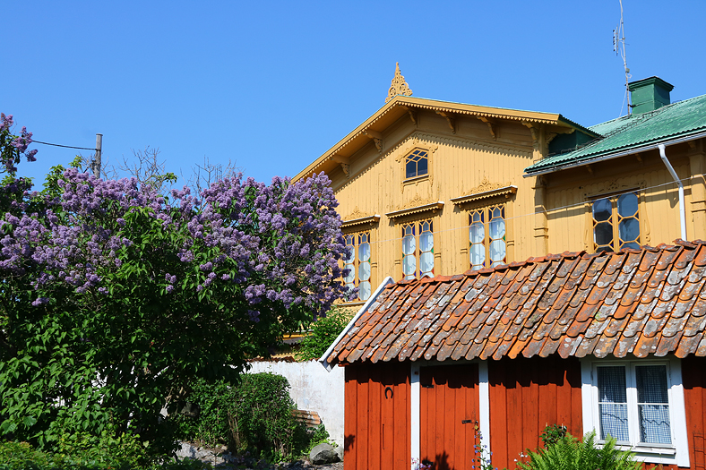 Även detta en klassisk Dalaröbyggnad i form av Societetshuset, med dock något bedagat skick på fasaden. Syrenerna var fortfarande i full blom på många buskar, även om i lite mattare färger på sina ställen. Och i de ställen där solen strålat på som mest var syrenerna överblommade.