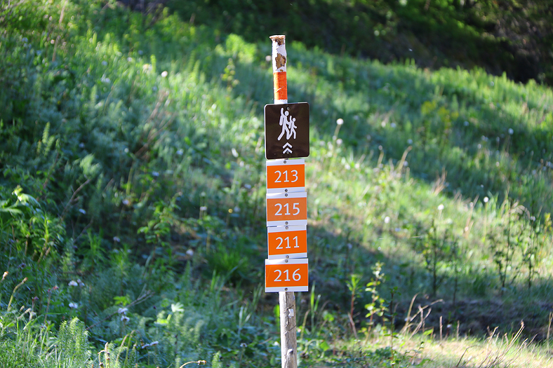 En tanke med att åka till Åre var att en dag vandra upp till Åreskutans topp, risken fanns dock att vädret inte skulle tillåta detta då fjällväder brukar kunna innebära varierad väderlek med en hel del låga moln och dimma, inklusive nederbörd dessutom. Jag fick dock en söndag som bjöd på enastående fint väder, så det var med stark motivation jag utgick ifrån hotellet strax efter halv tio. Direkt tog jag av mot vandringsled 215 som blev min led uppför berget.