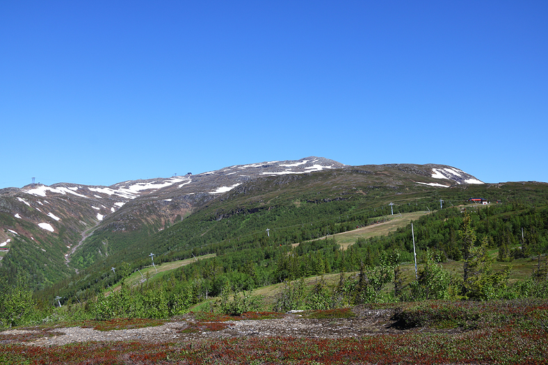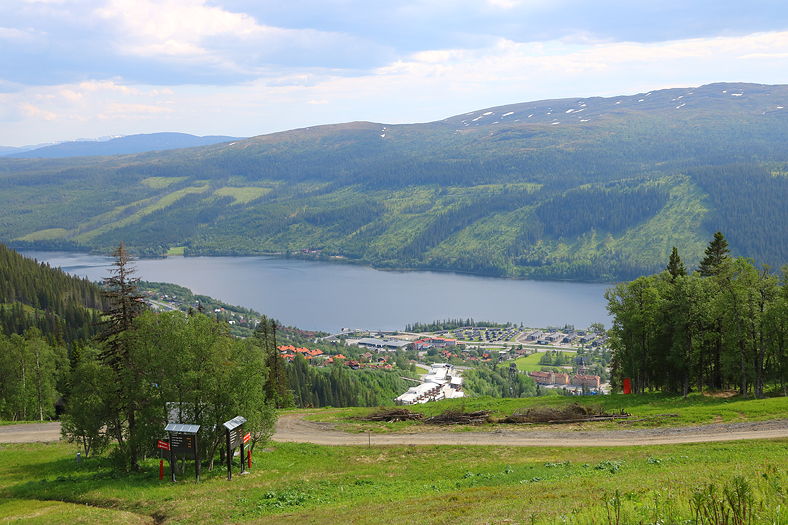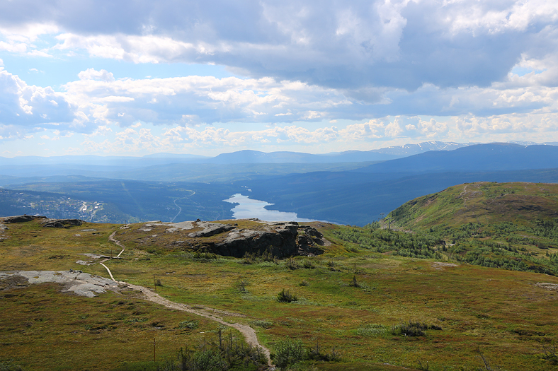 Vy bort mot Norge har man från toppen. Åre ligger i jämnhöjd med Trondheim kartgeografiskt, Trondheim som är Norges tredje största stad och tillhör landskapet Trøndelag, som också är det man åker in i om man fortsätter med järnvägen via Storlien eller med bil på Europaväg 14.