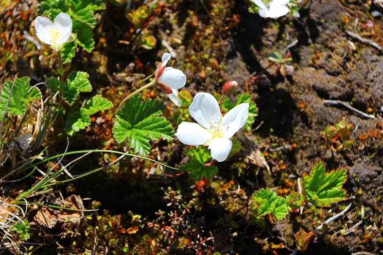 Den blomstertid var nu kommen även till lågfjället. Blomning på denna ört som har ett bär som uppskattas, i bland annat syltform till våfflor exempelvis – nämligen hjortron.
