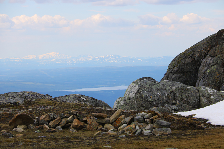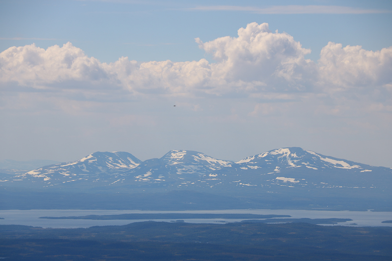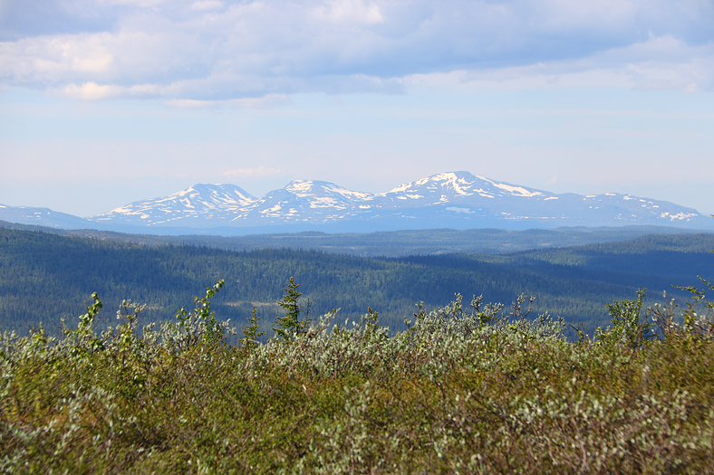 Vy bort mot den del av fjället som jag vandrade på vägen upp till toppen. Totthummeln till höger ser inte så mäktigt ut på avstånd, även om de branta skogsstigarna visade på något annat. 😉