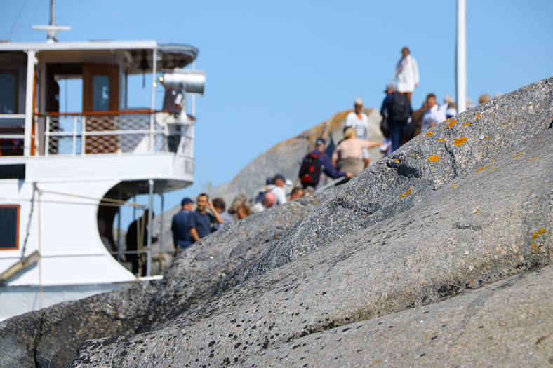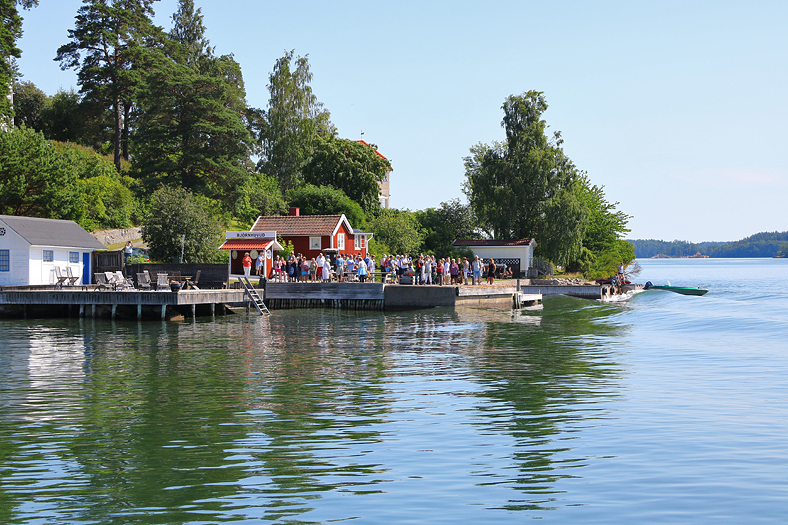 De som med fritidsbåt kommit ut till ön denna lördag i tron om att få en lugn stund kom att ha fel. Plötsligt invaderades ön av 150 ångbåtsresenärer. 😉