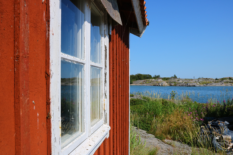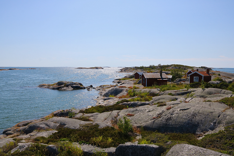 Röda sjöbodar är ett kännetecken för ytterskärgårdsmiljön med de gamla fiskelägena.