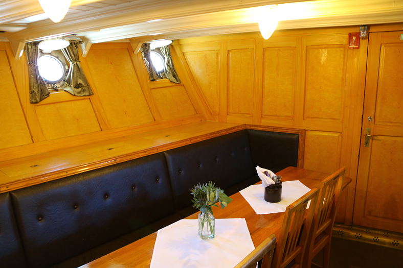 Möja såg jag och Niclas inte så mycket av då vi valde inta en måltid i den vackra försalongen på Blidösund. Här kunde man inta ångbåtsbiff eller lax. Jag valde laxen vilken smakade mycket bra, och en mycket trevlig service fick man av personalen i baren (som ligger precis innanför dörrarna till fördäck på båten).