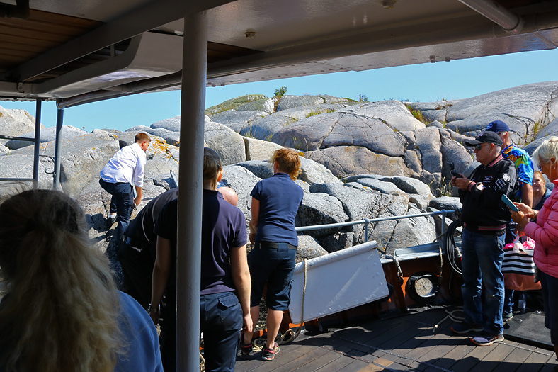 Klippigt! Och lite brant vid tilläggsplatsen, men besättningen hjälpte till för de som behövde en hand.
