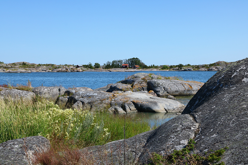 Ingen hög vegetation på Lilla Nassa direkt, men en hel del buskar och en del blomster.